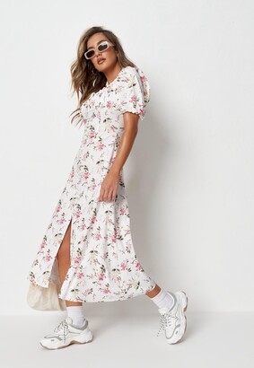 Missguided White Floral Milkmaid Button Front Midi Dress Shopstyle